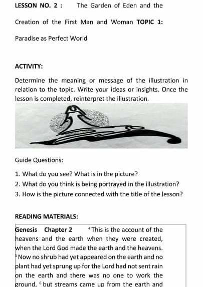 Lesson No 2 The Garden Of Eden And The Creation Of Chegg Com